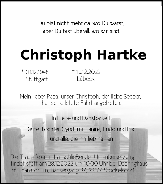 Christoph Hartkegestorben am 15. Dezember 2022
