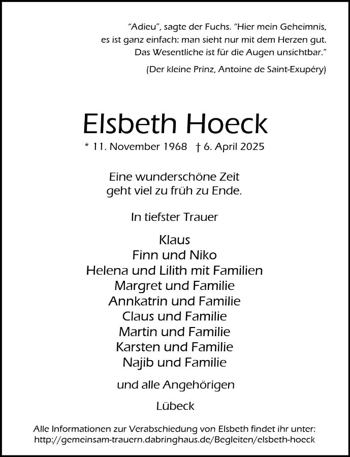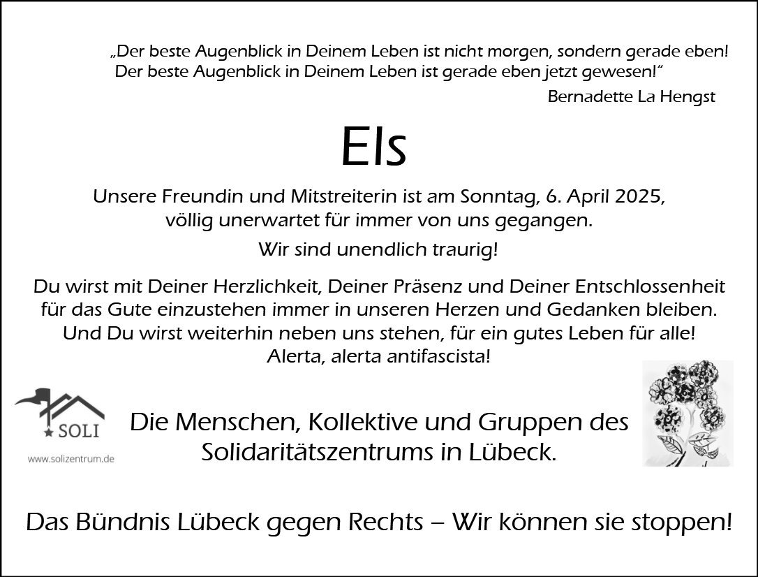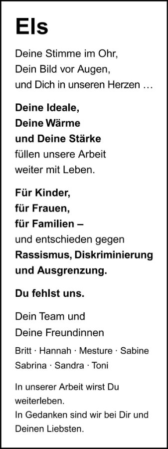 Anstelle von Kränzen und Blumen bitten wir stattdessen um eine Spende zugunsten der großartigen Freien Naturschule MSE von Elsbeths Nichte Sophie.