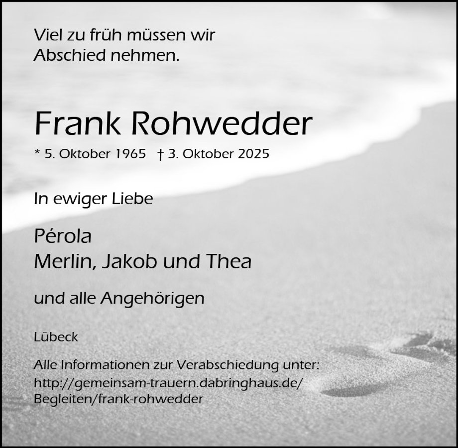 Leider musste ich von Deinem Tod neben Deiner Schwester Petra in unserer gemeinsamen Zeit in Ägypten erfahren. Durch Petra bekam ich ein bisschen das Gefühl, Dich tatsächlich zu kennen. Ich fühle mich dadurch irgendwie verbunden und möchte der ganzen Familie meine Anteilnahme aussprechen und wünsche allen viel Kraft für die Zukunft.