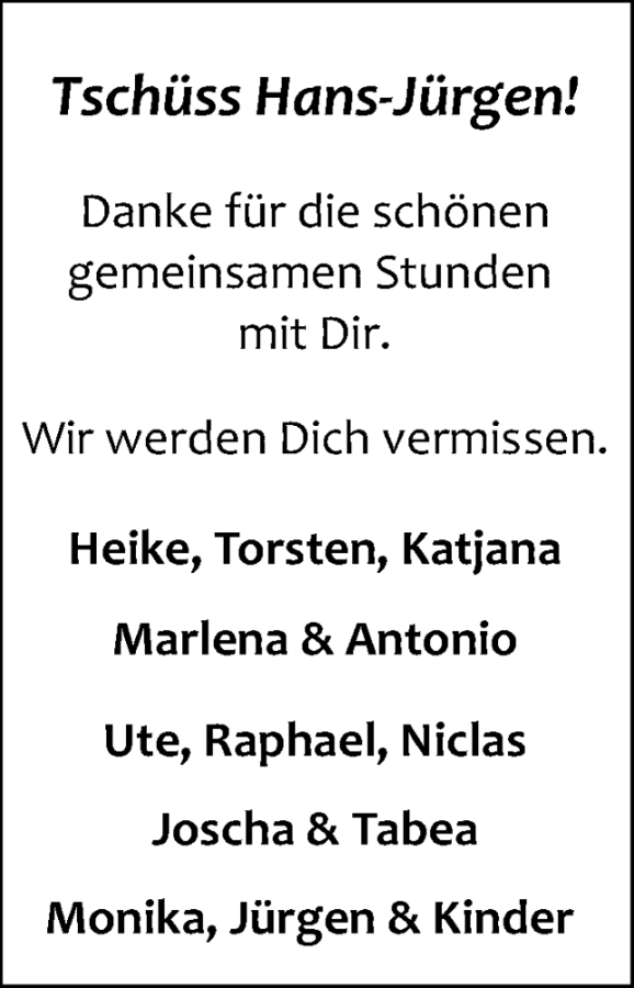 Lieber Hans - Jürgen,
