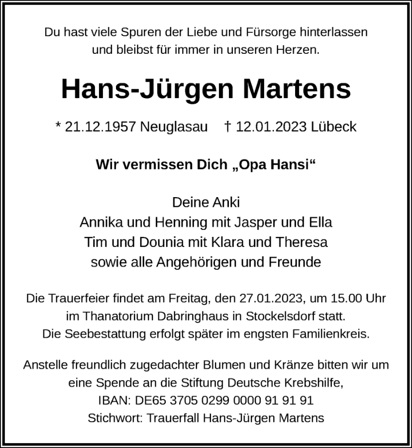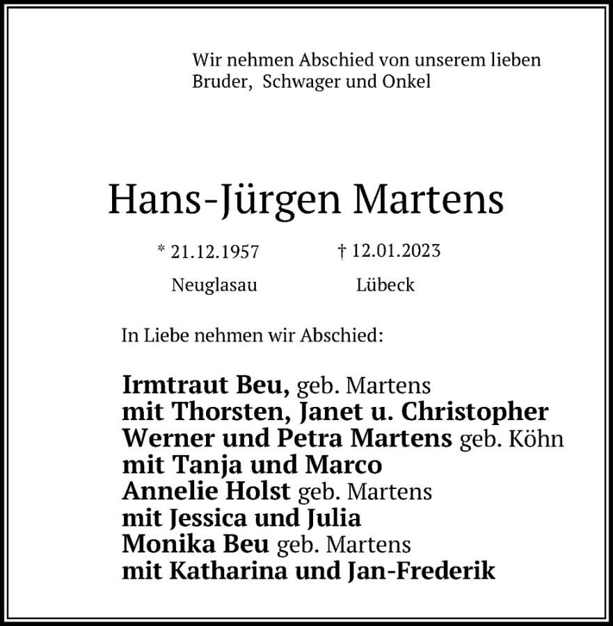 Hans-Jürgen Martensgestorben am 12. Januar 2023