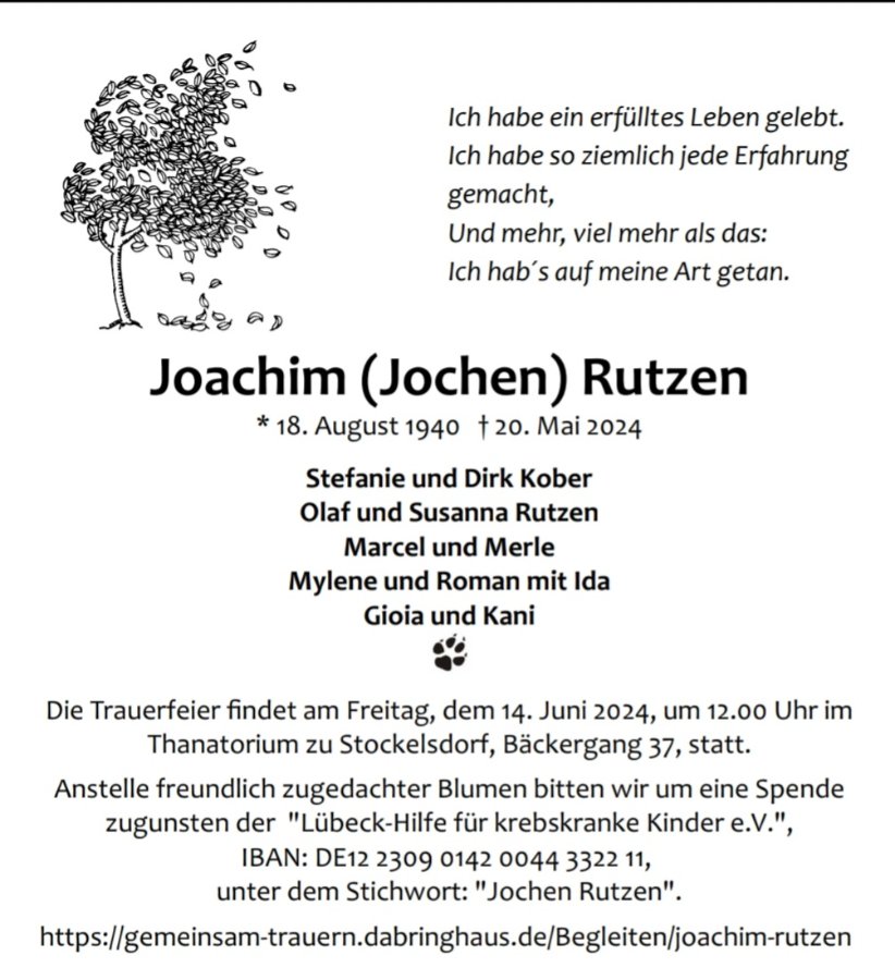 Mein herzliches Beileid zu eurem schweren Verlust.