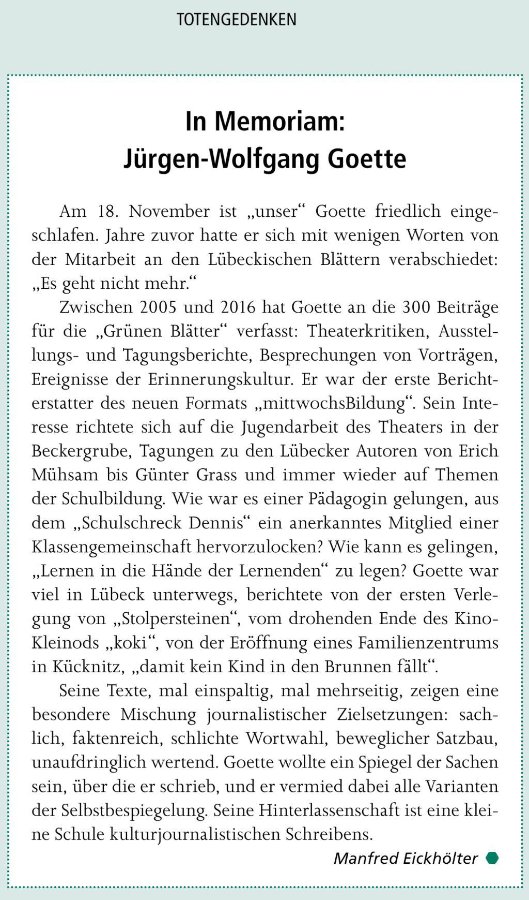 Trauerfeier, St. Lorenz-Kirche zu Lübeck