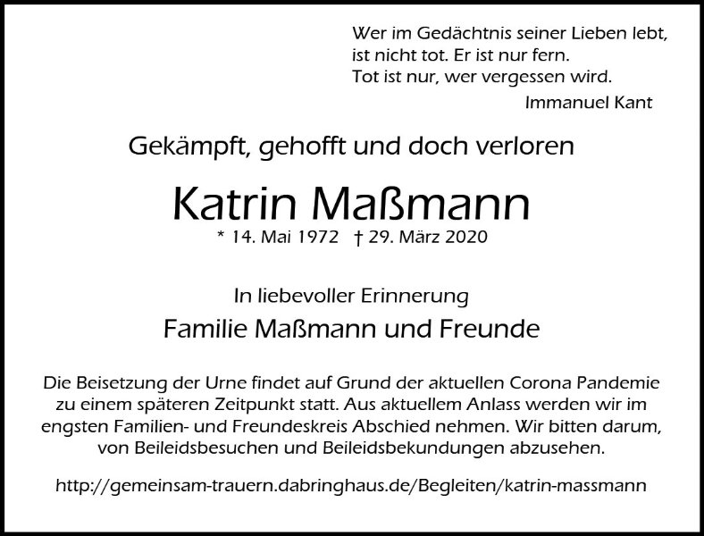 Lesen Sie hier die Anzeigen und Trauerpost!
