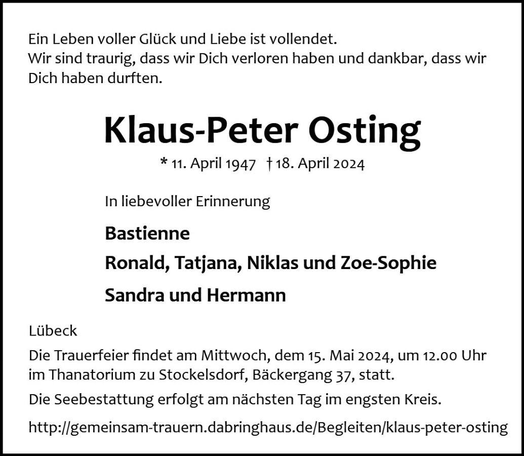 gestorben am 18. April 2024 in Lübeck