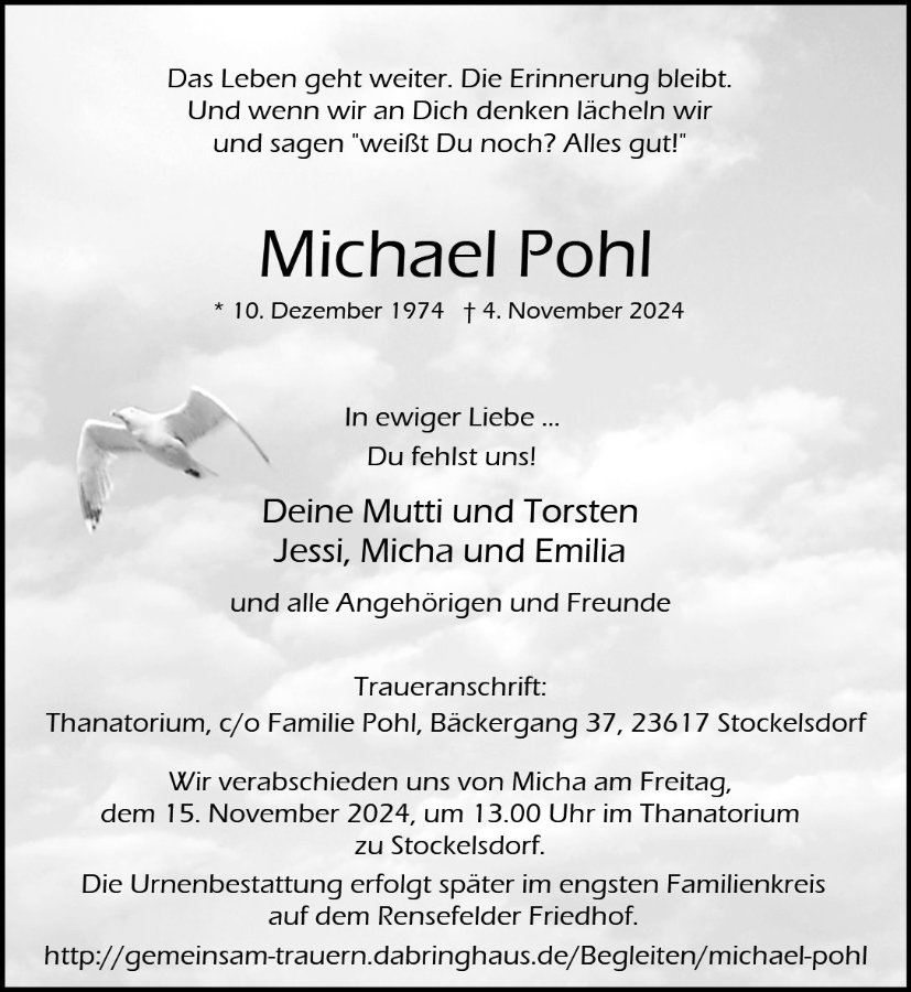 Ruhe in Frieden lieber Micha und pass von da oben auf deine liebsten auf. Du wirst hier sehr vermisst