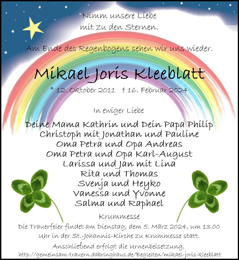 Meine Gedanken sind heute bei Dir und Deiner Familie