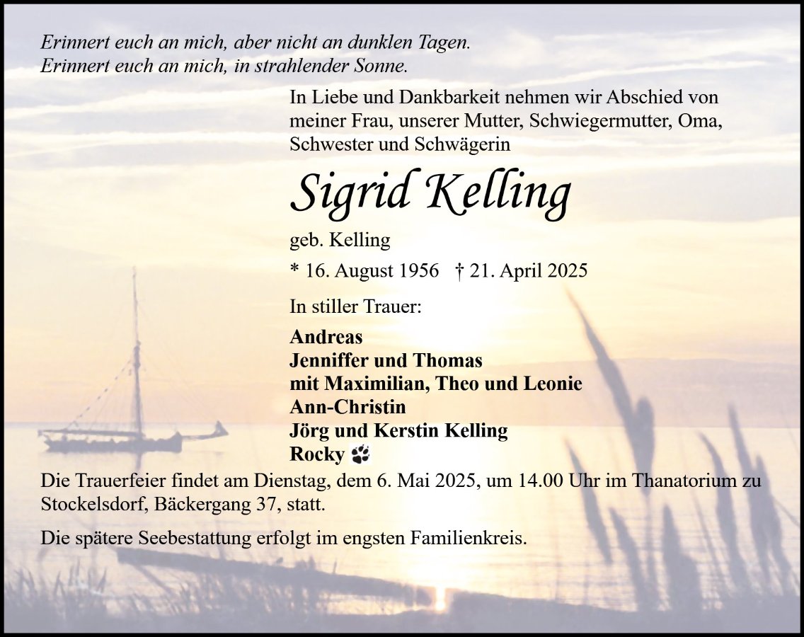 In Gedanken liebe Sigrid sind wir bei dir und deiner Familie .