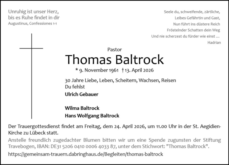 gestorben am 13. April 2026 in Lübeck