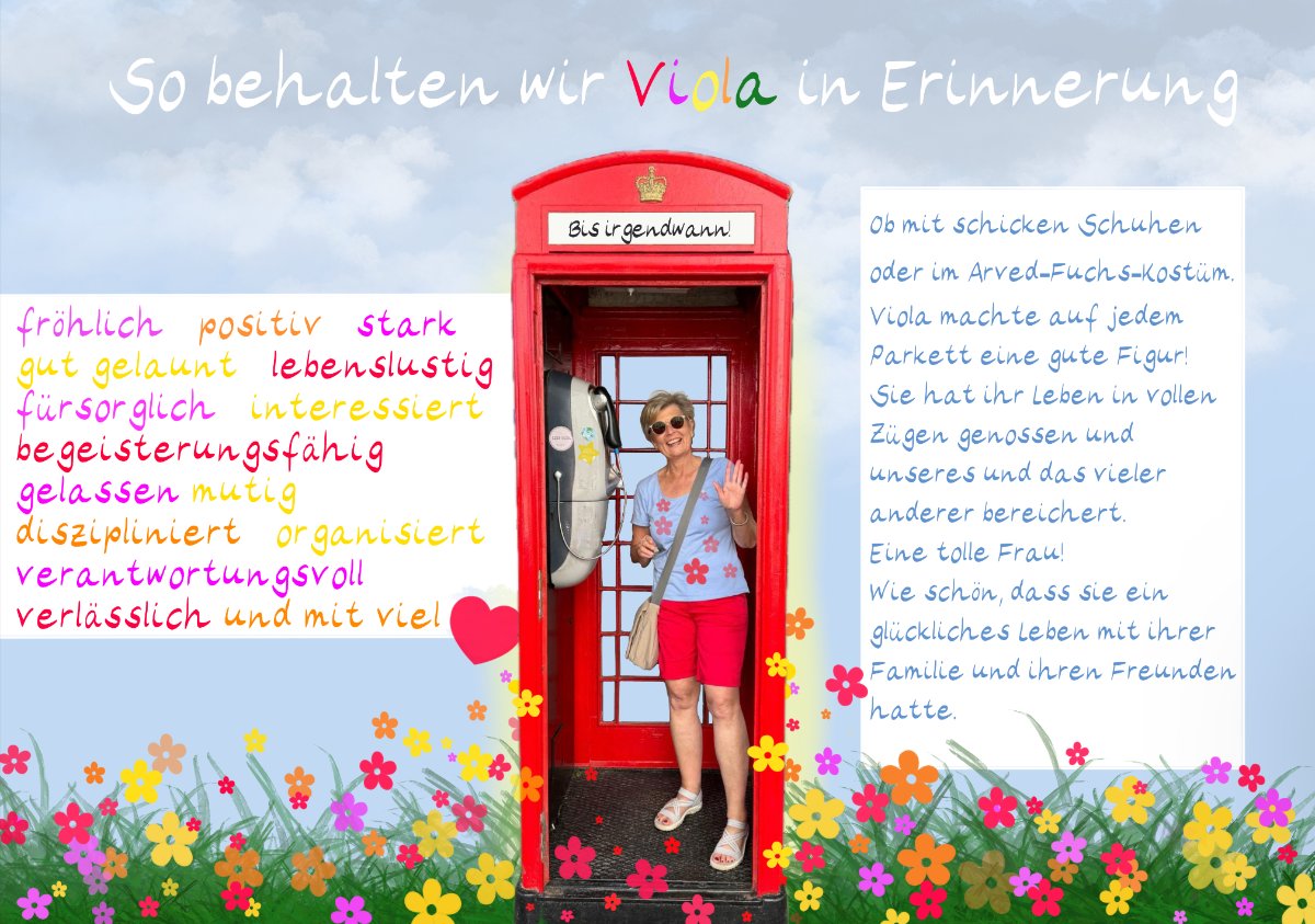Die Lücke, die Viola hinterlässt wird sich nie ganz schließen lassen. Auch wir sind endlos traurig darüber, sie nie mehr treffen zu können. Wir wünschen euch von ganzem Herzen viel Kraft und Zuversicht weiter nach vorne zuschauen. Viola wird uns immer als lebensjahend, wunderbar und liebenswert in Erinnerung bleiben.