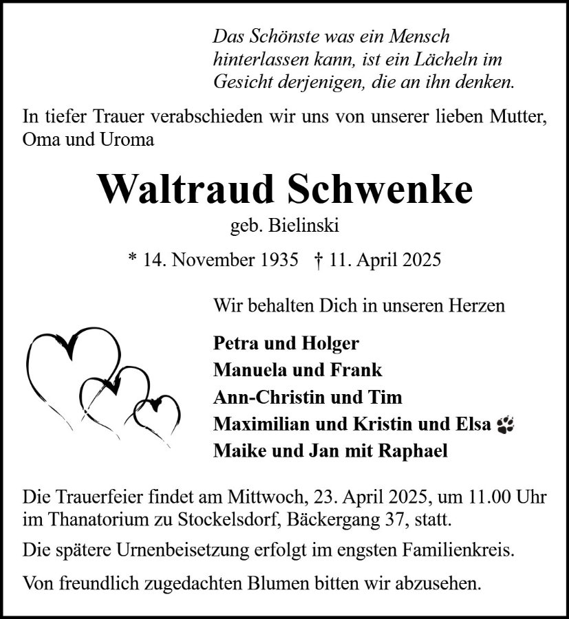 Waltraud Schwenke geb. Bielinski